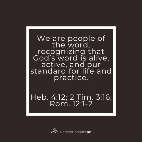 WE EXIST TO CONNECT GENERATIONS TO THE HOPE OF JESUS CHRIST. We stand firm on His faithfulness and inspire our family and community to walk in authority and in faith.