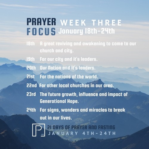 as we embark on a 21-day journey of corporate prayer and fasting to seek God, His will, and His power. Fasting, both privately and as a body of believers, is significant because it and prayer release God's blessing and power over our lives, families, businesses, church, and city!
